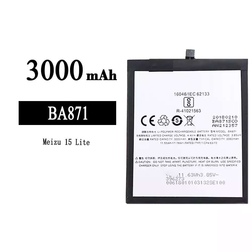 バッテリー BA871 対応 Meizu 15 Lite
