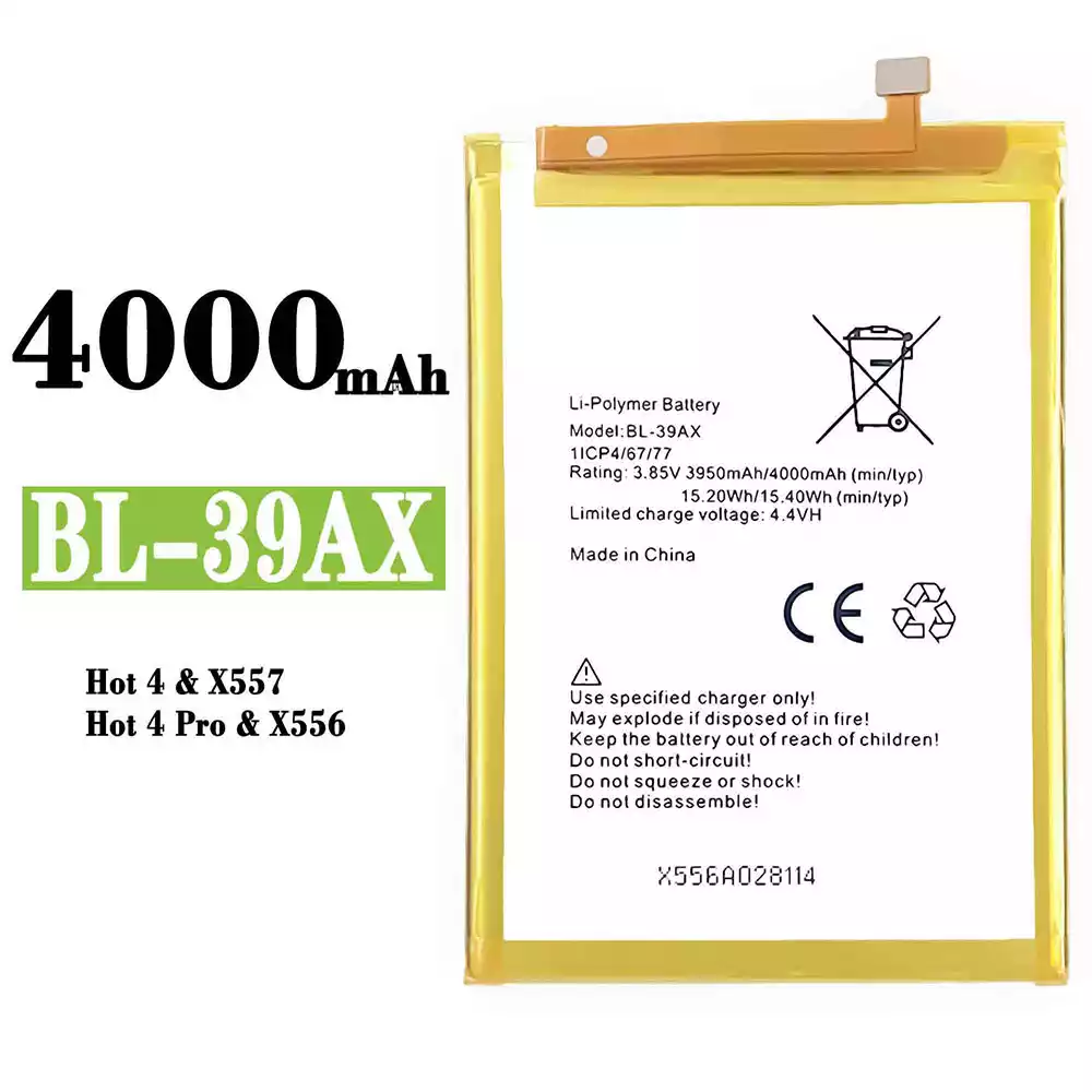 バッテリー BL-39AX 対応 Infinix X557 / X556 / Hot 4 Pro /Hot 4