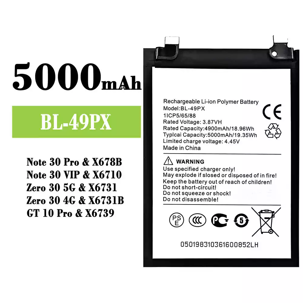 バッテリー BL-49PX 対応 Infinix Note 30 Pro / X678B / Note 30 VIP / X6710 / Zero 30 5G / X6731 /Zero 30 4G / X6731B / GT 10 Pro / X6739