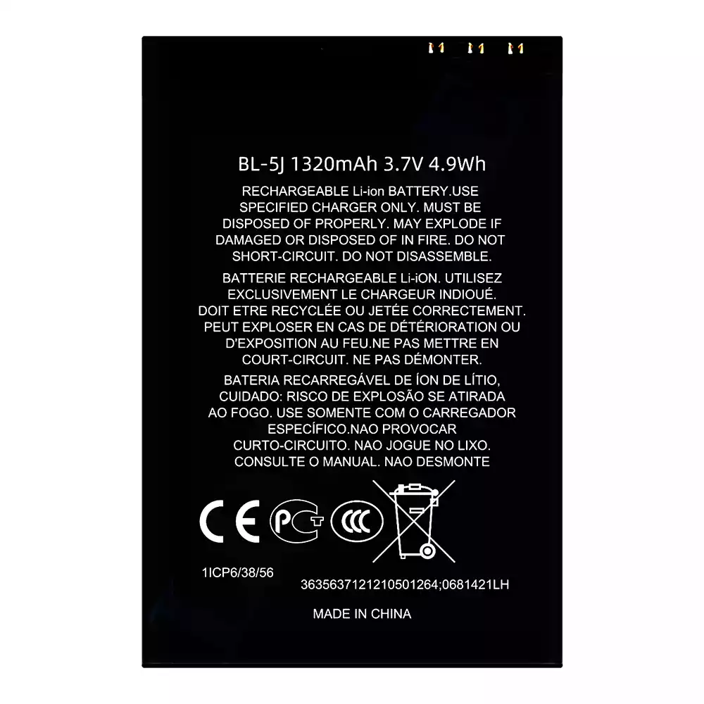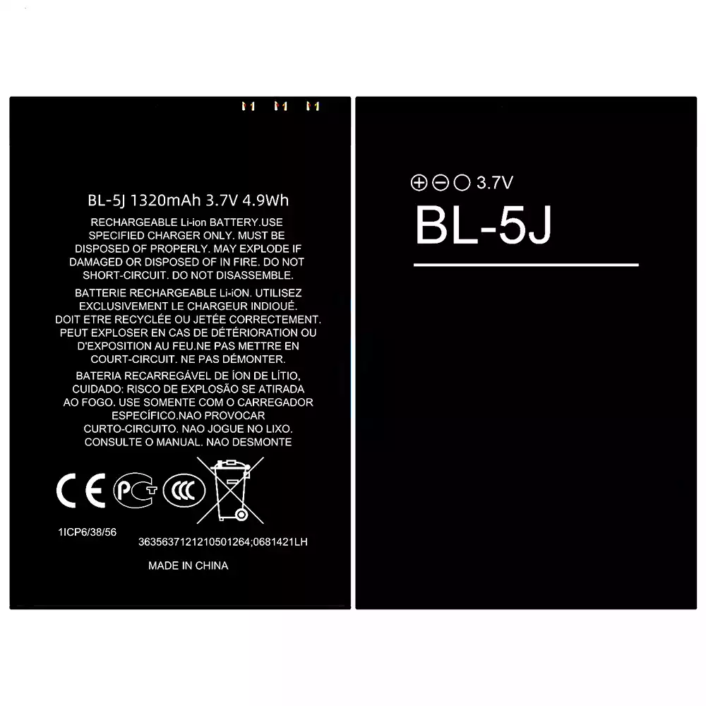 バッテリー BL-5J 対応 Nokia Lumia 520 / Lumia 521 RM-917 (T-Mobile) / Lumia 525 / Lumia 530 / Lumia 530 RM-1017