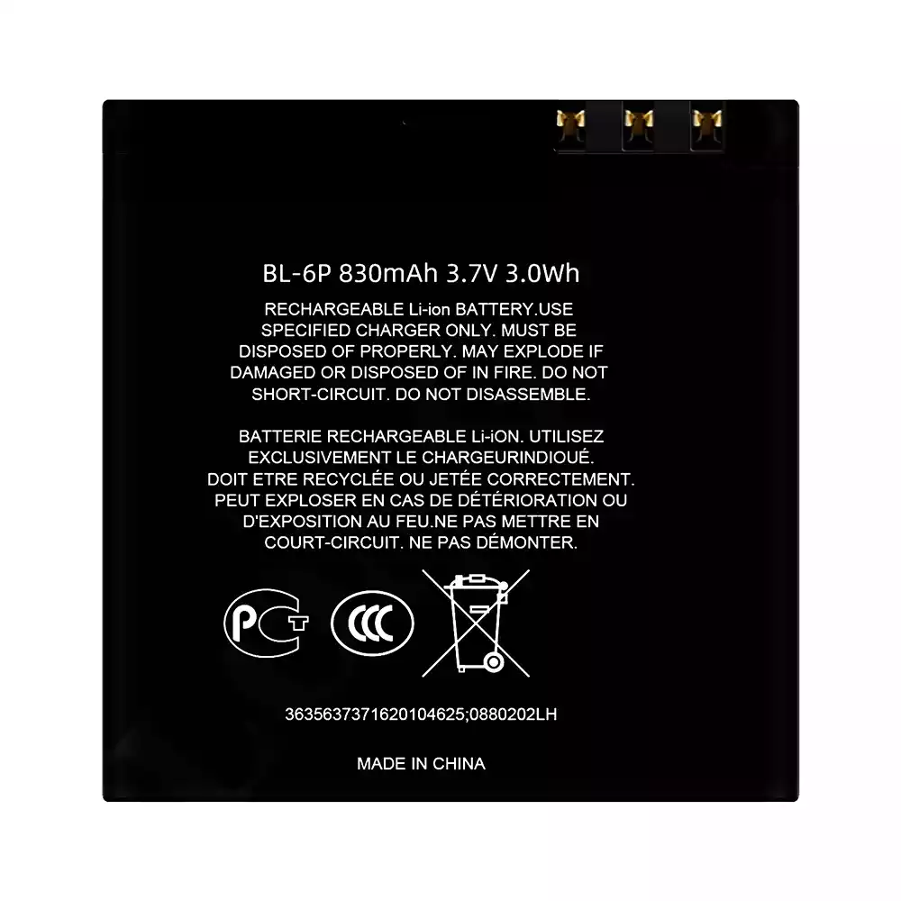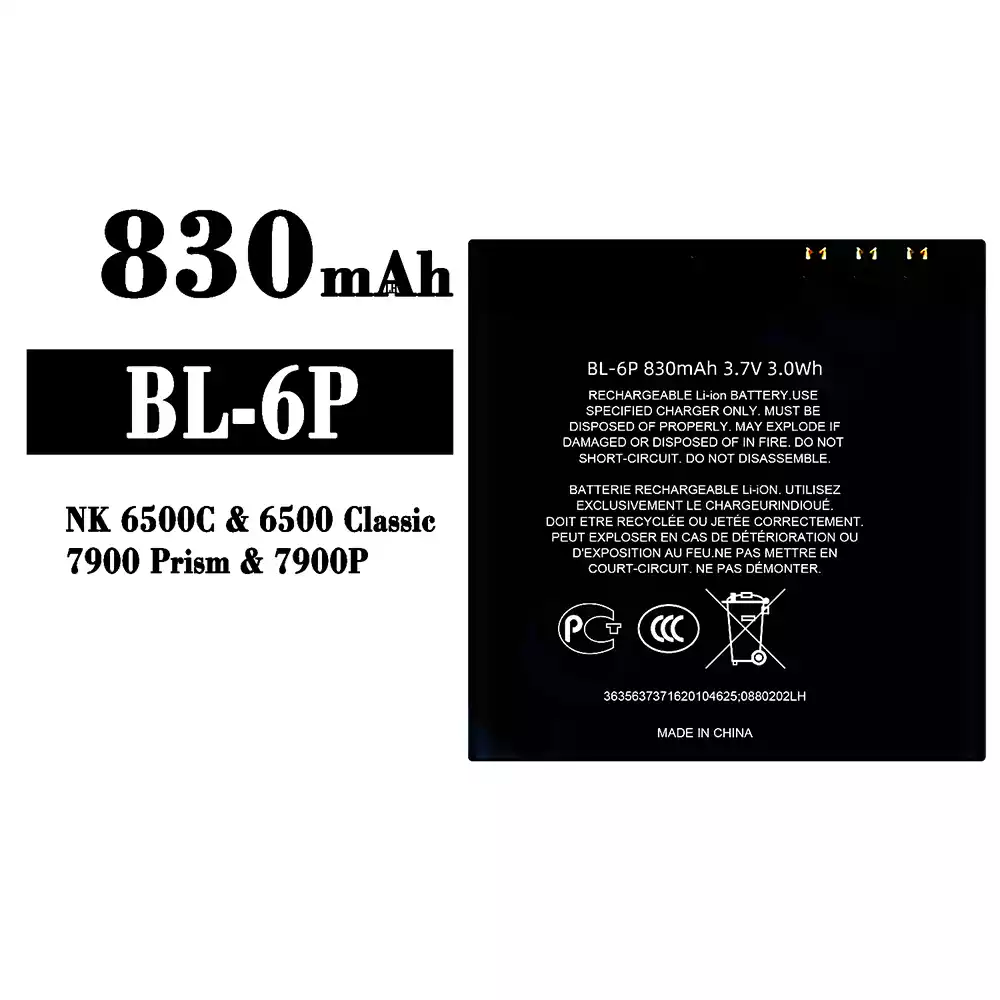 バッテリー BL-6P 対応 Nokia NK 6500C/7900 Prism/7900P/6500 Classic