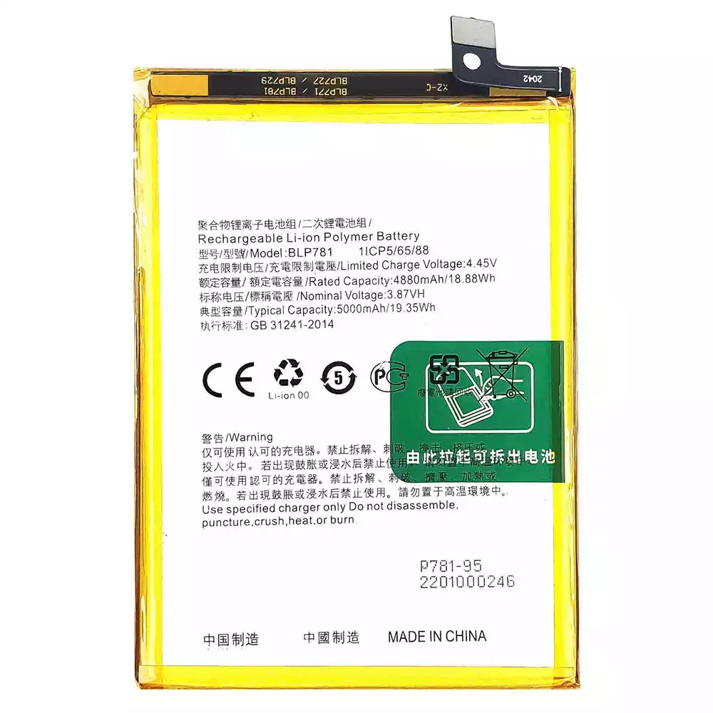 バッテリー BLP781 対応 OPPO A52 2020 / CPH2061 / CPH2069 / PADM00 / PDAM10 / A92 2020 / CPH2059 / A72 2020