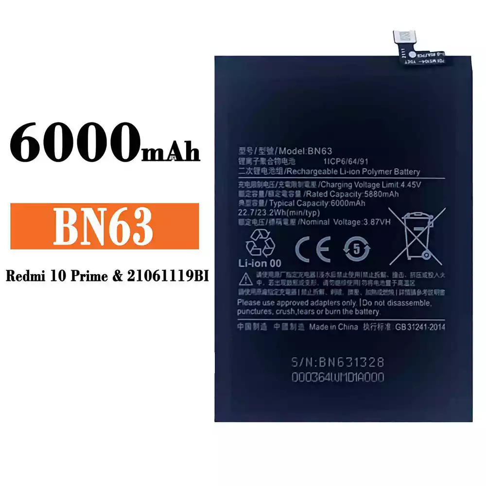 バッテリー BN63 対応 Xiaomi Redmi 10 Prime / 21061119BI