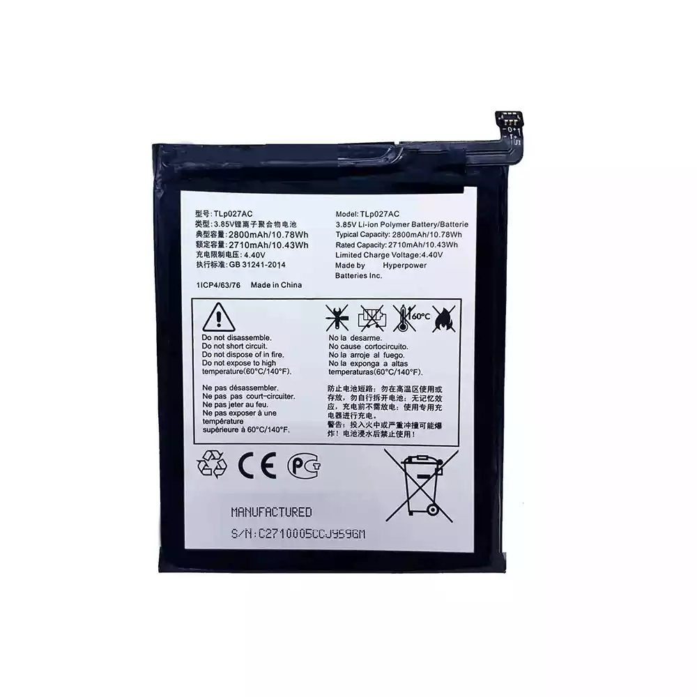バッテリー TLP027AC 対応 Alcatel A5 5085D/Y 6085D OT5085C